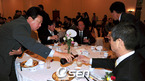 전통을 자랑하는 '2008 제일화재 프로야구대상 시상식'이 로이스터 감독을 제외한 7개구단 감독과 수상자들 각 구단 관계자들이 참석한 가운데 8일 오전 프라자 호텔에서 벌어졌다. 시상식이 끝나고 건배 시간때 김재박 LG 감독이 히어로즈 김시진 감독에게 술을 따르고 있다./손용호 기자spjj@osen.co.kr