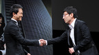 액션 코미디 영화 '유감스러운 도시' 제작보고회가 9일 서울 압구정 CGV에서 열렸다. 이 자리에는 김동원 감독과 주연배우 정준호 정웅인 김상중 박상민 김대희가 참석했다. 늦게 회견장에 도착한 정운택을 정웅인이 반갑게 맞이하고 있다./민경훈 기자rumi@osen.co.kr
