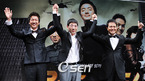 액션 코미디 영화 '유감스러운 도시' 제작보고회가 9일 서울 압구정 CGV에서 열렸다. 이 자리에는 김동원 감독과 주연배우 정준호 정웅인 김상중 박상민 김대희가 참석했다. 기자회견을 마치고 늦게 회견 장에 도착한 정운택과 함께 정웅인과 정준호가 포토타임을 갖고 있다./민경훈 기자rumi@osen.co.kr