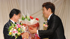 프로야구 '2008 제 13회 일구상 시상식'이 10일 서울 청담동 리베라호텔에서 열렸다. 일구대상을 수상한 김경문 두산 감독에게 김현수가 꽃다발을 건네고 있다./민경훈 기자 rumi@osen.co.kr 온라인으로...
