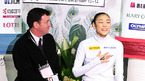 2008~2009시즌 ISU(국제빙상경기연맹) 그랑프리 파이널 경기가 12일 고양시 어울림누리 얼음마루에서 개막돼 김연아(18ㆍ군포 수리고)가 그랑프리 파이널 3연패에 도전한다. 여자 싱글 쇼트 프로그램에서 1위를 차지한 김연아가 자신의 점수가 나오자 브라이언 오서 코치와 함께 환하게 웃고 있다./고양=손용호 기자spjj@osen.co.kr