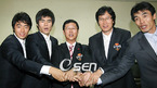 내년 시즌부터 프로축구 제15구단으로 참가하는 강원FC 창단식이 18일 오후 강원도 춘천시 석사동 호반체육관에서 열렸다. 창단식 전 권순용 김영후, 김원동 사장, 최순호 감독, 최진철 코치가 기자회견을 갖고 있다./춘천=윤민호 기자ymh@osen.co.kr