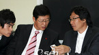 내년 시즌부터 프로축구 제15구단으로 참가하는 강원FC 창단식이 18일 오후 강원도 춘천시 석사동 호반체육관에서 열렸다. 창단식 전 기자회견에 참석한 김영후, 김원동 사장, 최순호 감독이 휴대폰을 바라 보고 있다./춘천=윤민호 기자ymh@osen.co.kr