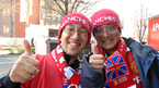 박지성이 소속된 맨체스터 유나이티드와 리가 데 키토의 '2008 FIFA 클럽 월드컵' 결승전이 21일 일본 요코하마 닛산스타디움에서 벌어졌다. 일본내 맨유 팬들이 맨유의 우승을 기원하며 포즈를 취하고 있다./요코하마=송석린 객원기자 song@osen.co.kr