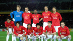 박지성이 소속된 맨체스터 유나이티드와 리가 데 키토의 '2008 FIFA 클럽 월드컵' 결승전이 21일 일본 요코하마 닛산스타디움에서 벌어졌다. 선발로 출전한 박지성이 동료들과 함께 기념사진을 찍고 있다./요코하마=송석린 객원기자song@osen.co.kr