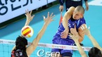 'NH농협2008~2009 V-리그' 천안 현대캐피탈과 대전 삼성화재의 경기가 21일 오후 천안 유관순체육관에서 벌어졌다. 1세트 삼성화재 안젤코가 현대캐피탈 후인정의 블로킹 사이로 스파이크를 넣고 있다./천안=윤민호 기자ymh@osen.co.kr