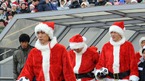 올해로 6회째를 맞는 홍명보 장학재단의 '하나은행과 함께 하는 SHARE THE DREAM FOOTBALL MATCH 2008'가 25일 오후 서울 상암월드컵경기장에서 열렸다. 경기 전 이청용이 산타 복장을 하고 경기장으로 들어서고 있다./상암=윤민호 기자ymh@osen.co.kr