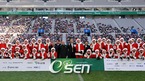 올해로 6회째를 맞는 홍명보 장학재단의 '하나은행과 함께 하는 SHARE THE DREAM FOOTBALL MATCH 2008'가 25일 오후 서울 상암월드컵경기장에서 열렸다. 자선 축구 경기에 참석한 선수들이 기념촬영을 하고 있다./상암=윤민호 기자ymh@osen.co.kr