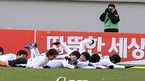 올해로 6회째를 맞는 홍명보 장학재단의 '하나은행과 함께 하는 SHARE THE DREAM FOOTBALL MATCH 2008'가 25일 오후 서울 상암월드컵경기장에서 열렸다. 사랑팀 이호가 골을 넣고 동료 선수들과 수영 세리머니를 선보이고 있다./상암=윤민호 기자ymh@osen.co.kr