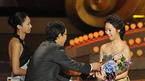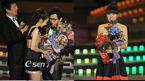 '2008 KBS 연예대상' 시상식이 27일 저녁 서울 여의도 KBS 별관 공개홀에서 열렸다. 김경아가 원더걸스 소희로부터 코미디 부문 여자 신인상 상패를 받고 있다./민경훈 기자 rumi@osen.co.kr 온라인으로...