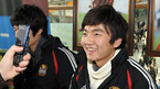 2008 FC 서울 테마 사진전 팬 사인회가 27일 서울역 KTX 탑승구 앞에서 열렸다. 이 자리에는 김치우 김진규 김승용 이상협 이청용 기성용 이승렬이 참여했다. 이청용이 팬으로부터 선물을 받고 감탄하고 있다./민경훈 기자 rumi@osen.co.kr
