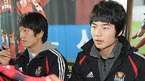 2008 FC 서울 테마 사진전 팬 사인회가 27일 서울역 KTX 탑승구 앞에서 열렸다. 이 자리에는 김치우 김진규 김승용 이상협 이청용 기성용 이승렬이 참여했다. 기성용이 쑥스럽게 미소지으며 팬과 악수를 하고 있다./민경훈 기자 rumi@osen.co.kr
