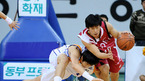 '2008-2009 동부 프로미 프로농구' 안양 KT&G와 창원 LG 경기가 27일 안양실내체육관에서 벌어졌다. 2쿼터 LG 박지현이 KT&G 신제록 이현호의 블로킹 사이로 레이업슛을 시도하고 있다./안양=김영민 기자ajyoung@osen.co.kr