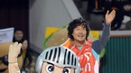 '2008-2009 동부프로미 프로농구' 서울 SK와 서울 삼성의 경기가 28일 오후 잠실학생체육관에서 벌어졌다. 오광록이 시구를 위해 전동차를 타고 경기장으로 입장하고 있다./잠실학생체=윤민호 기자 ymh@osen.co.kr