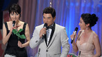 '2008 KBS 연기대상' 시상식이 31일 저녁 여의도 KBS 신관 공개홀에서 올 한해 동안 브라운관을 빛낸 많은 스타들이 참석한 가운데 열렸다. 남녀 인기상을 수상한 장근석 장미희 성유리가 수상 순서를 양보하고 있다./민경훈 기자 rumi@osen.co.kr