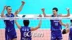'NH농협2008~2009 V-리그' 인천 대한항공과 대전 삼성화재의 경기가 1일 오후 인천 도원실내체육관에서 벌어졌다. 1세트 삼성화재 안젤코가 공격을 성공시키고 동료선수와 기뻐하고 있다./인천=윤민호 기자ymh@osen.co.kr