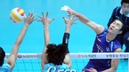 'NH농협2008~2009 V-리그' 인천 대한항공과 대전 삼성화재의 경기가 1일 오후 인천 도원실내체육관에서 벌어졌다. 13세트 삼성화재 안젤코의 스파이크를 대한항공 신영수와 진상헌이 블로킹하고 있다./인천=윤민호 기자ymh@osen.co.kr