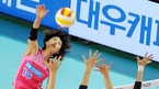 'NH농협2008~2009 V-리그' 흥국생명과 GS칼텍스의 경기가 4일 오후 천안 유관순실내체육관에서 벌어졌다. 2세트 GS칼텍스 데라크루즈가 블로킹 옆으로 스파이크를 넣고 있다./천안=윤민호 기자ymh@osen.co.kr