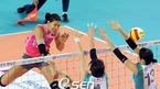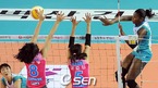 'NH농협2008~2009 V-리그' 흥국생명과 GS칼텍스의 경기가 4일 오후 천안 유관순실내체육관에서 벌어졌다. 2세트 GS칼텍스 데라크루즈가 흥국생명 블로킹 옆으로 틀어치며 공격하고 있다./천안=윤민호 기자ymh@osen.co.kr