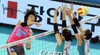 'NH농협2008~2009 V-리그' 흥국생명과 GS칼텍스의 경기가 4일 오후 천안 유관순실내체육관에서 벌어졌다. 2세트 GS칼텍스 김민지가 흥국생명의 3인 블로킹에 맞서 틀어치기로 공격하고 있다./천안=윤민호 기자ymh@osen.co.kr