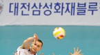 NH농협2008~2009 V-리그' 대전 삼성화재과 신협 상무의 경기가 6일 오후 대전 충무실내체육관에서 벌어졌다. 1세트 신협상무 임동규가 삼성화재 블로킹 사이로 스파이크를 넣고 있다./대전=윤민호 기자ymh@osen.co.kr