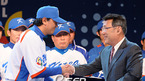 2009 WBC(WORLD BASEBALL CLASSIC) 국가대표 출정식 및 유니폼 발표회가 8일 서울 장충동 신라 호텔에서 열렸다. 선수 대표 손민한이 하일성 단장에게 출정서를 전달후 기념 촬영을 하고 있다./윤민호 기자ymh@osen.co.kr