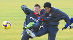 허정무 감독이 이끄는 대표팀이 11일 제주 서귀포시 토평동 서귀포 시민구장에서 오는 2월 11일 이란과의 2010 남아공 월드컵 아시아지역 최종 예선 4차전에 대비한 첫 훈련을 시작했다. 최효진과 정성룡이 훈련 중 볼다툼을 하고 있다./서귀포=민경훈 기자 rumi@osen.co.kr
