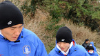 오는 2월 11일 이란과의 2010 남아공 월드컵 아시아지역 최종 예선 4차전에 대비해 서귀포서 훈련 중인 국가대표팀이 12일 오전 성산 일출봉에 올라 각오를 다지는 시간을 가졌다. 먼저 오르던 정성훈이 기성용에게 말을 걸고 있다./서귀포=민경훈 기자 rumi@osen.co.kr
