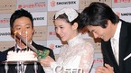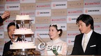 권상우 이범수 이보영 주연 영화 '슬픔보다 더 슬픈이야기'(감독/각본 원태연) 현장공개 및 기자간담회가 12일 오전 서울 서초구 서초동 성당에서 열렸다. 기자 간담회에 참석한 이범수와 이보영이 제작진이 준비 생일 케잌을 보고 놀라고 있다./윤민호 기자ymh@osen.co.kr