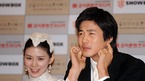 권상우 이범수 이보영 주연 영화 '슬픔보다 더 슬픈이야기'(감독/각본 원태연) 현장공개 및 기자간담회가 12일 오전 서울 서초구 서초동 성당에서 열렸다. 기자 간담회에 참석한 권상우와 이보영이 대화를 나누고 있다./윤민호 기자ymh@osen.co.kr