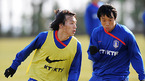 허정무 감독이 이끄는 대표팀이 13일 제주 서귀포시 토평동 서귀포 시민구장에서 오는 2월 11일 이란과의 2010 남아공 월드컵 아시아지역 최종 예선 4차전에 대비한 훈련을 가졌다. 오전 훈련 연습경기를 마치고 기성용과 이청용이 미소를 지으며 그라운드를 돌고 있다./서귀포=민경훈 기자 rumi@osen.co.kr