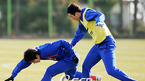 허정무 감독이 이끄는 대표팀이 13일 제주 서귀포시 토평동 서귀포 시민구장에서 오는 2월 11일 이란과의 2010 남아공 월드컵 아시아지역 최종 예선 4차전에 대비한 훈련을 가졌다. 오전 훈련 연습경기에서 볼다툼 중 이정수가 하대성을 밀고 있다./서귀포=민경훈 기자 rumi@osen.co.kr