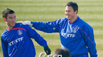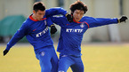 허정무 감독이 이끄는 대표팀이 13일 제주 서귀포시 토평동 서귀포 시민구장에서 오는 2월 11일 이란과의 2010 남아공 월드컵 아시아지역 최종 예선 4차전에 대비한 훈련을 가졌다. 오전 훈련 중 이운재가 한다리로 균형을 잡다가 옆에 있던 최효진의 어깨를 웃으며 잡고 있다./서귀포=민경훈 기자 rumi@osen.co.kr