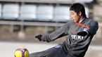 허정무 감독이 이끄는 대표팀이 13일 제주 서귀포시 토평동 서귀포 시민구장에서 오는 2월 11일 이란과의 2010 남아공 월드컵 아시아지역 최종 예선 4차전에 대비한 훈련을 가졌다. 오후 훈련 중 기성용이 깜직한 모습으로 몸을 풀고 있다./서귀포=민경훈 기자 rumi@osen.co.kr