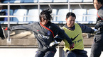 허정무 감독이 이끄는 대표팀이 13일 제주 서귀포시 토평동 서귀포 시민구장에서 오는 2월 11일 이란과의 2010 남아공 월드컵 아시아지역 최종 예선 4차전에 대비한 훈련을 가졌다. 오후 훈련 중 김치우가 정조국의 태클을 피하기 위해 공을 공중에 차올리며 피하고 있다./서귀포=민경훈 기자 rumi@osen.co.kr