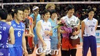 NH농협 2008~2009 V리그 올스타전이 18일 오후 서울 장충체육관에서 열려 세트스코어 2-1으로 K-STAR가 V-STAR에 승리를 거뒀다. 김요한이 트로피를 받고 동료들과 즐거워하고 있다./장충체=윤민호 기자ymh@osen.co.kr