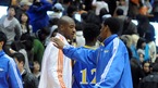 '2008-2009 동부프로미 프로농구' 부산 KTF와 서울 삼성의 경기가 25일 오후 부산 사직실내체육관에서 벌어져 연장 끝에 92-86으로 서울 삼성이 승리를 거뒀다. 삼성 헤인즈와 KTF 토마스가 인사를 나누고 있다./부산=윤민호 기자ymh@osen.co.kr