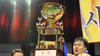2009 하이서울 설날 통합장사 씨름대회 청룡-백호급 본선 및 결승전이 27일 서울 중구 장충체육관에서 열렸다. 윤정수가 유승록과의 결승전서 3-0으로 승리를 거둔 후 우승 트로피를 받고 있다./장충체=민경훈 기자 rumi@osen.co.kr