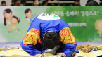 2009 하이서울 설날 통합장사 씨름대회 청룡-백호급 본선 및 결승전이 27일 서울 중구 장충체육관에서 열렸다. 윤정수가 유승록과의 결승전서 3-0으로 승리를 거둔 후 관중석을 향해 절을 올리고 있다./장충체=민경훈 기자 rumi@osen.co.kr
