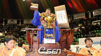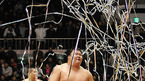 2009 하이서울 설날 통합장사 씨름대회 청룡-백호급 본선 및 결승전이 27일 서울 중구 장충체육관에서 열렸다. 윤정수가 유승록과 결승전서 3-0으로 승리를 거두자 축하 리본이 터지고 있다./장충체=민경훈 기자 rumi@osen.co.kr