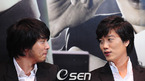 영화 '작전'의 시사회가 28일 주연배우 박용하 박희순 김무열 김민정이 참석한 가운데 코엑스 메가박스에서 열렸다. '작전'은 주식으로 대박을 노리는 조폭을 그린 영화다. 박용하가 손가락으로 입술을 만지며 취재진의 질문을 듣고 있다./손용호 기자spjj@osen.co.kr