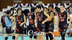 NH농협2008~2009 V-리그' 천안 현대캐피탈과 구미 LIG손해보험의 경기가 1일 오후 서울 올림픽공원 제 2체육관에서 벌어져 세트 스코어 3-1로 현대캐피탈이 승리를 거뒀다. 현대캐피탈 선수들이 승리의 기쁨을 나누고 있다./올림픽2체=윤민호 기자ymh@osen.co.kr