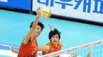 NH농협2008~2009 V-리그' 천안 현대캐피탈과 구미 LIG손해보험의 경기가 1일 오후 서울 올림픽공원 제 2체육관에서 벌어졌다. 2세트 LIG손해보험 카이가 블로킹 사이로 스파이크를 넣고 있다./올림픽2체=윤민호 기자ymh@osen.co.kr