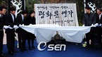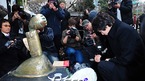 '광화문 연가'를 작곡한 故 이영훈의 노래비 '광화문 연가' 제막식 및 추모식이 14일 오후 서울 덕수궁 돌담길에서 열렸다. 고인의 유족인 아내 김은옥 씨와 아들 이정환이 노래비에 헌화하고 있다. 김승현의 사회로 이루어진 이날 추모 노래비 제막식은 이문세, 정훈희, 전제덕, 안성기, 송대관 등 연예인과 오세훈...