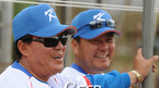 동경에서 열리는 WBC 1차 예선을 앞둔 한국 대표팀이 19일(한국시간)하와이 센트럴 오아후 리지널 파크에서 wbc 4강신화를 재현하기 위해 구슬땀을 흘렸다. 강성우 코치가 강민호의 1루 송구때 오른발이 뒤로 빠지는 것을 지적하고 있다./호놀룰루=손용호 기자spjj@osen.co.kr