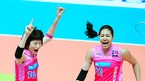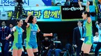 NH농협2008~2009 V-리그' 인천 GS칼텍스와 천안 흥국생명의 경기가 19일 오후 인천시 도원시립체육관에서 벌어졌다. 2세트 공격을 성공시킨 흥국생명 선수들이 환호하고 있다./인천=윤민호 기자ymh@osen.co.kr