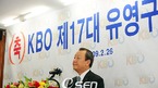 제17대 KBO 총재로 정식 선출된 유영구(명지의료재단 이사장) 총재는가 2월 26일 오전 서울 강남구 도곡동 야구회관에서 취임식을 갖고, 총재로서의 공식 임기를 시작한다. 박용오 전 총재에 이어 두 번째 민선 총재로 임기는 3년이다. 취임식을 마친 유영구 총재가 기자회견을 갖고 있다./윤민호 기자ymh@osen.co,kr