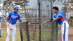 WBC 야구 대표팀이 26일(한국시간) 클리블랜드 인디언스의 추신수가 합류한 가운데 센트럴 오아후 리저널 파크에서 마지막 팀 훈련을 가졌다. 대표팀은 27,28일 하와이 대학교에서 한화와 연습경기를 가진다. 추신수가 정근우에게 자신의 배트로 프리배팅을 하라고 전해주고 있다./호놀룰루=손용호 기자spjj@osen.co.kr