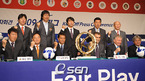 2009 K리그 개막 기자회견이 4일 서울 서대문구 홍은동 그랜드 힐튼 호텔 그랜드 볼룸에서 열렸다. 기자회견 전에 막내인 신태용 신임 성남 감독이 대표로 페어플레이를 다짐하고 있다./민경훈 기자 rumi@osen.co.kr