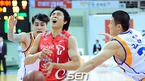 '2008-2009 동부프로미 프로농구' 안양 KT&G와 서울 SK의 경기가 6일 저녁 경기도 안양시 안양실내체육관에서 벌어졌다. 2쿼터 슛을 시도하던 SK 스팀스마가 KT&G 김일두의 강한 수비에 공을 놓치고 있다./안양=윤민호 기자ymh@osen.co.kr